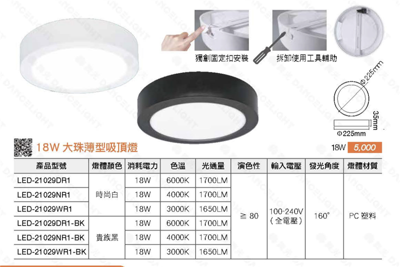 1.薄型吸頂燈厚度僅有3.5公分