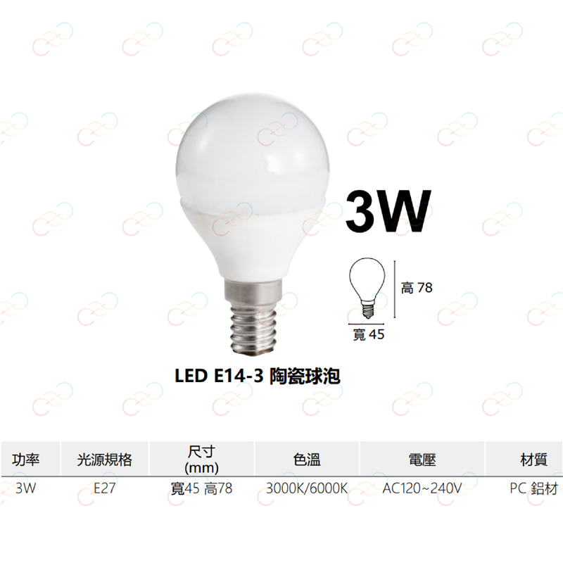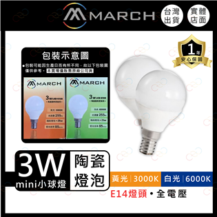 (A Light)附發票 MARCH LED E14 3W 陶瓷 燈泡 球泡 全電壓 白光 黃光 3瓦 小夜燈 電燈泡