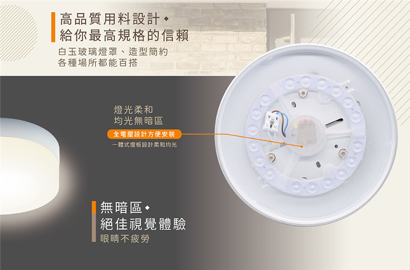 2.一體式燈版設計柔和均光