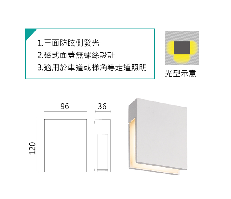 1.三面防眩側發光