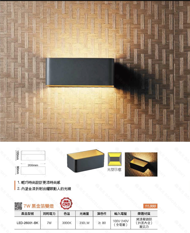 舞光 白色 金箔雙燈 黑金箔雙燈 壁燈 燈牆 LED 7W 全電壓 LED26001/26001-BK 3000k 上下雙面打光