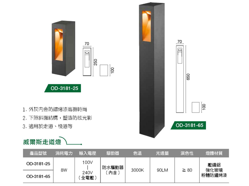 燈體材質:壓鑄鋁、強化玻璃、粉體防鏽烤漆