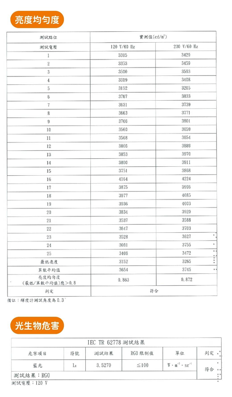 🌟通過IEC62778(應用於評估光源與燈具整燈光危害試驗報告)