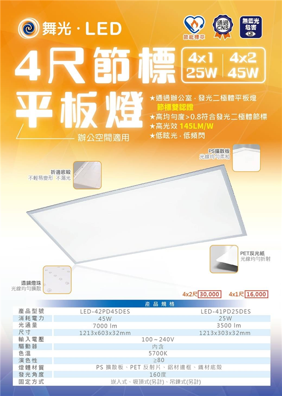 家家亮~舞光 LED 4尺 x 1尺 雙節標柔光平板燈 LED-41PD25DES