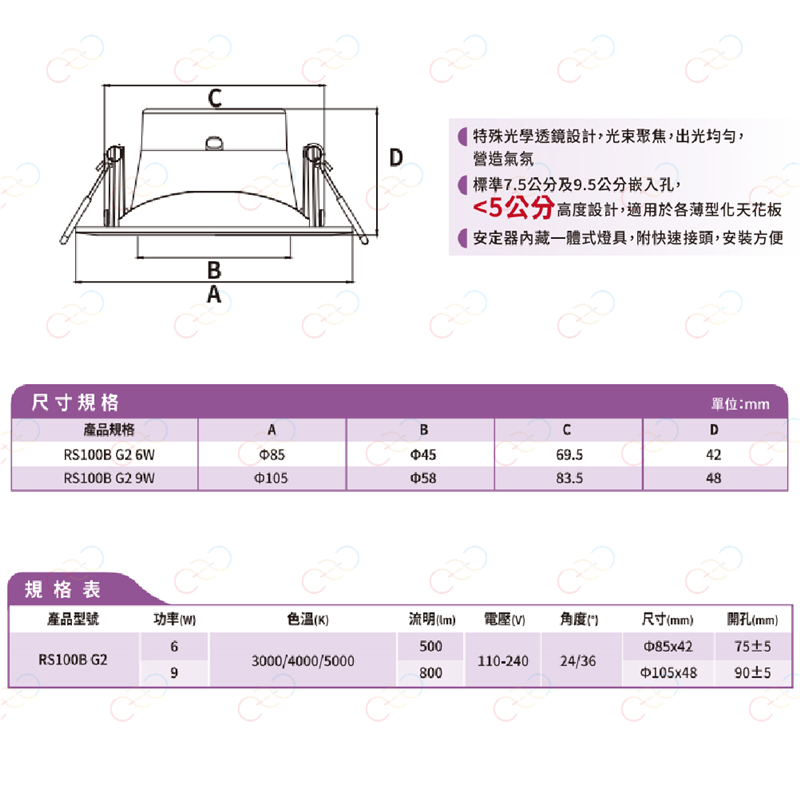 規格 冷白 | 5000k中性白 | 4000k暖白 | 3000k