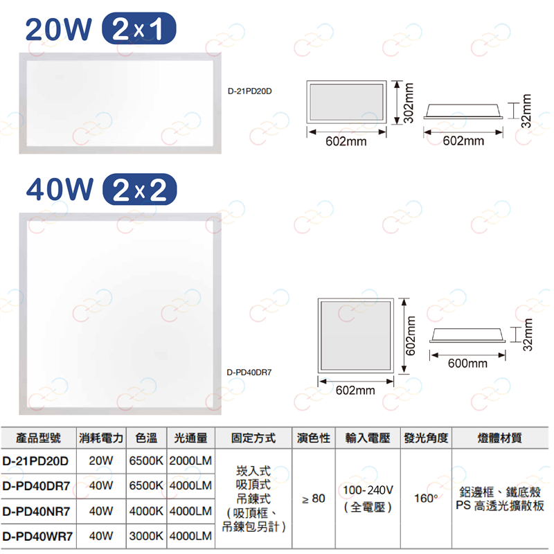 燈體材質:鋁邊框、鐵底殼、PET反射片、PS高透光擴散板
